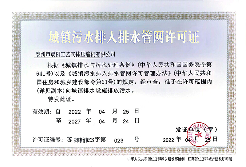 城鎮(zhèn)污水排入排水管網(wǎng)許可證